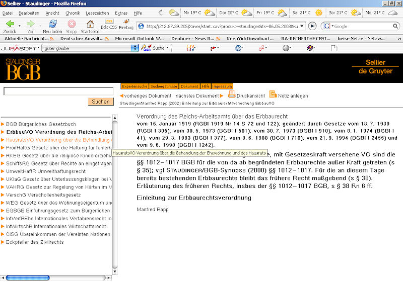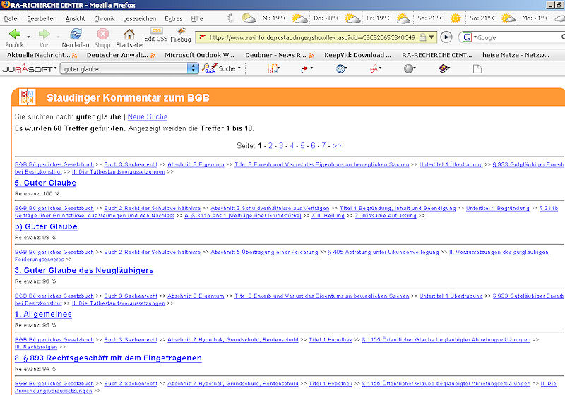 Suchergebnislistes des Staudinger BGB Großkommentar - von RA-RC spezielle in einer Google Ansicht aufbereitet