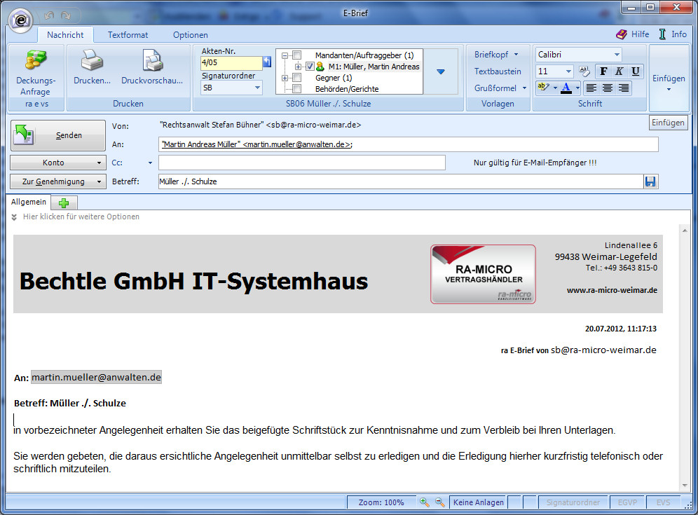 ra-micro E-Brief & E-Postfach - professionelle, integrierte Kommunikation mit Gerichten, Versicherungen und Mandanten