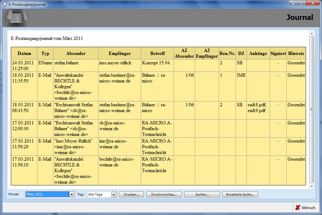 - Emails von Mandanten, Gegnern, Anwälten, Versicherungen usw.