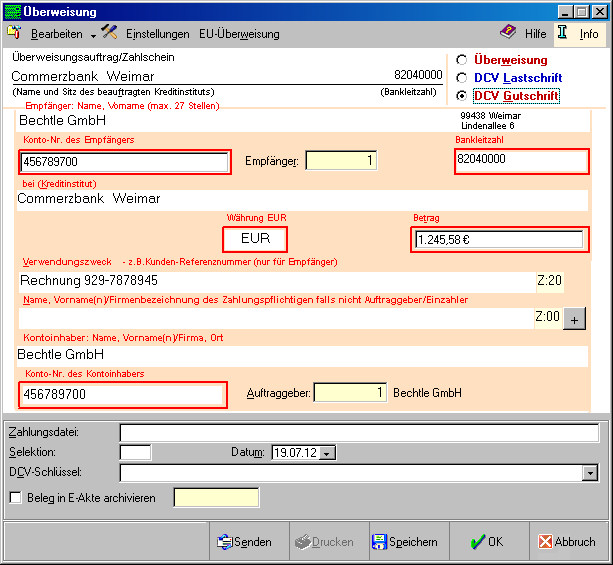 ... Schecks erfassen, drucken sowie Datenträgeraustauschdateien (DTAUS) erstellen. So können z.B. eingehende Fremdgelder direkt bei der Buchung als Überweisung zur Auszahlung an den Mandanten gebracht werden.